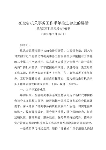 / 领导讲话:20240725在全省机关事务工作半年推进会上的讲话——黑龙江省机关局局长马存新