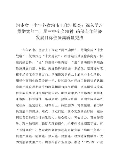 领导讲话:20240724(半年工作总结)河南省上半年各省辖市工作汇报会:深入学习贯彻党的二十届三中全会精神 确保全年经济发展目标任务高质量完成
