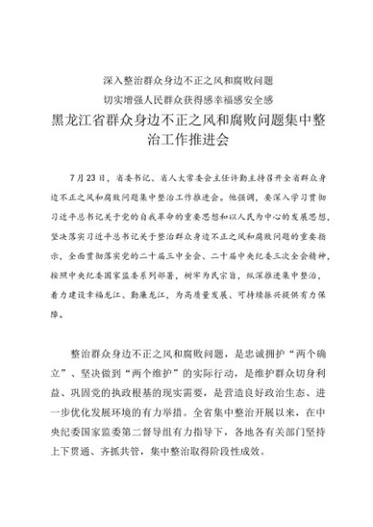 / 领导讲话:20240723黑龙江省群众身边不正之风和腐败问题集中整治工作推进会