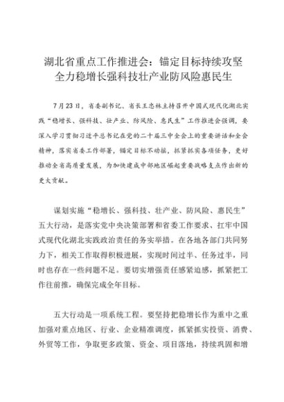 / 领导讲话:20240723湖北省重点工作推进会:锚定目标持续攻坚 全力稳增长强科技壮产业防风险惠民生