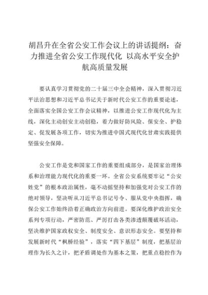 / 领导讲话:20240724胡昌升在全省公安工作会议上的讲话提纲:奋力推进全省公安工作现代化 以高水平安全护航高质量发展