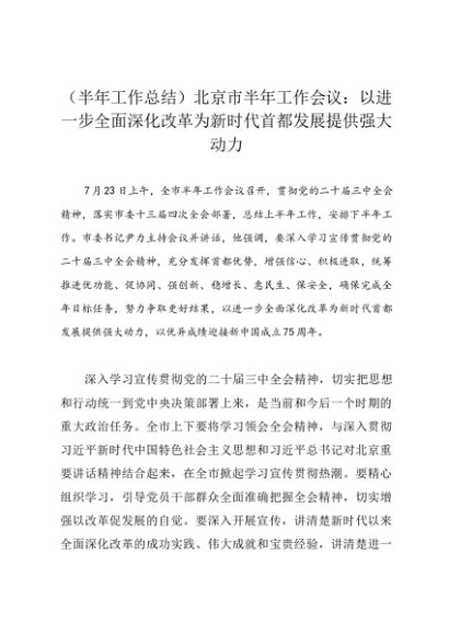 领导讲话:20240723(半年工作总结)北京市半年工作会议:以进一步全面深化改革为新时代首都发展提供强大动力