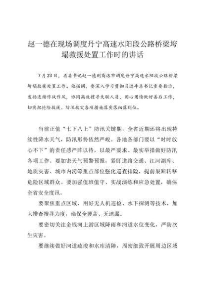 / 领导讲话:20240723赵一德在现场调度丹宁高速水阳段公路桥梁垮塌救援处置工作时的讲话