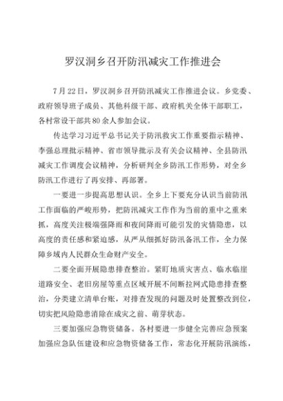 领导讲话:20240722罗汉洞乡召开防汛减灾工作推进会