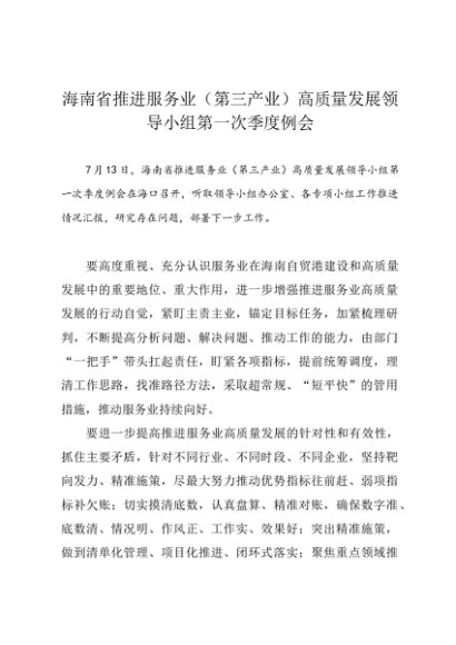领导讲话:20240713海南省推进服务业(第三产业)高质量发展领导小组第一次季度例会