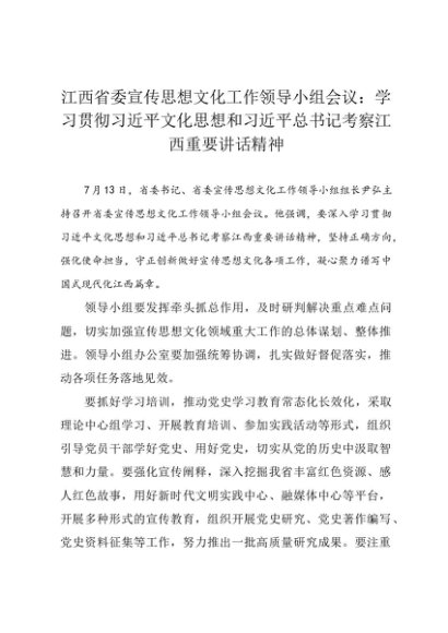 / 领导讲话:20240713江西省委宣传思想文化工作领导小组会议:学习贯彻习近平文化思想和习近平总书记考察江西重要讲话精神