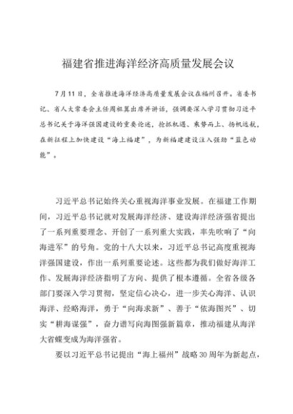 / 领导讲话:20240711福建省推进海洋经济高质量发展会议