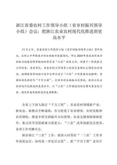 / 领导讲话:20240711浙江省委农村工作领导小组(省乡村振兴领导小组)会议:把浙江农业农村现代化推进到更高水平