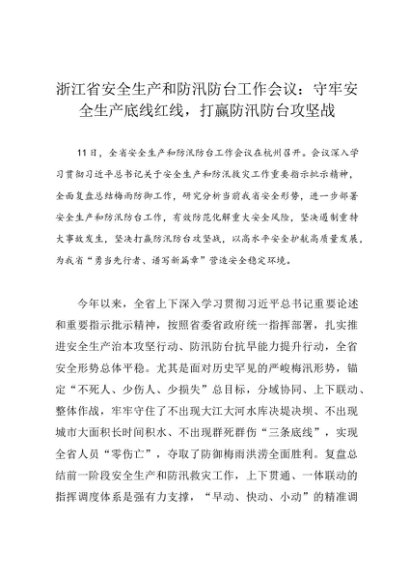 / 领导讲话:20240711浙江省安全生产和防汛防台工作会议:守牢安全生产底线红线,打赢防汛防台攻坚战