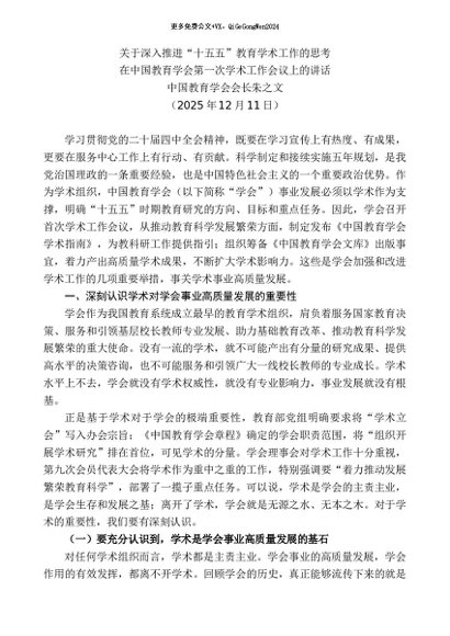 / 领导讲话:20251215在中国教育学会第一次学术工作会议上的讲话:关于深入推进“十五五”教育学术工作的思考