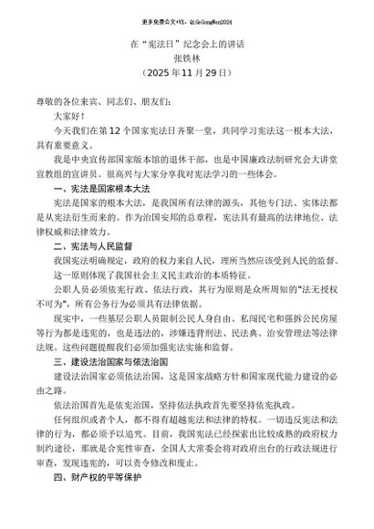 / 领导讲话:20251215张铁林:在“宪法日”纪念会上的讲话