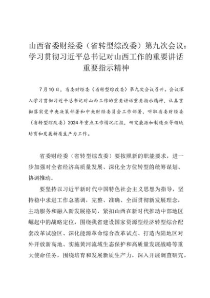 / 领导讲话:20240710山西省委财经委(省转型综改委)第九次会议:学习贯彻习近平总书记对山西工作的重要讲话重要指示精神