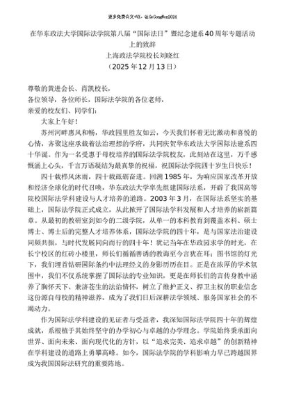 / 领导讲话:20251215刘晓红:在华东政法大学国际法学院第八届“国际法日”暨纪念建系40周年专题活动上的致辞