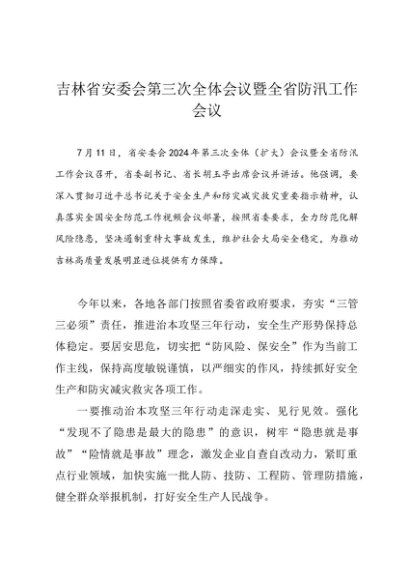 / 领导讲话:20240711吉林省安委会第三次全体会议暨全省防汛工作会议