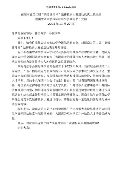 / 领导讲话:20251215龙韶:在湖南省第二届“芙蓉律师杯”法律检索大赛启动仪式上的致辞