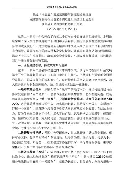 / 领导讲话:20251215陕西省人民检察院检察长王旭光:在第四届新时代检察工作高质量发展论坛上的发言