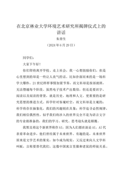 / 领导讲话:20240629在北京林业大学环境艺术研究所揭牌仪式上的讲话