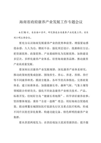/ 领导讲话:20240630海南省政府康养产业发展工作专题会议