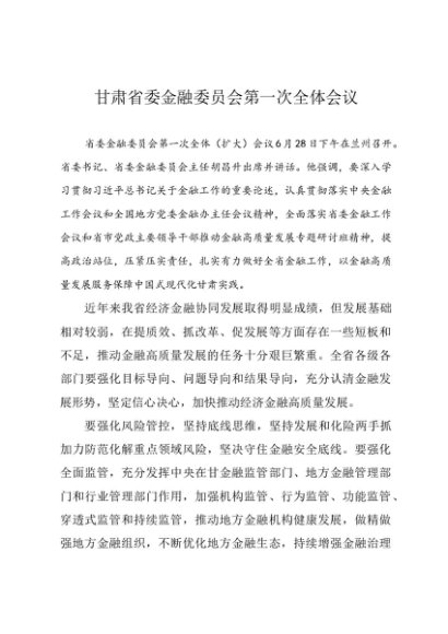 / 领导讲话:20240628甘肃省委金融委员会第一次全体会议