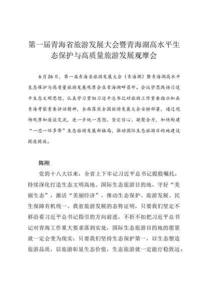 领导讲话:20240626第一届青海省旅游发展大会暨青海湖高水平生态保护与高质量旅游发展观摩会