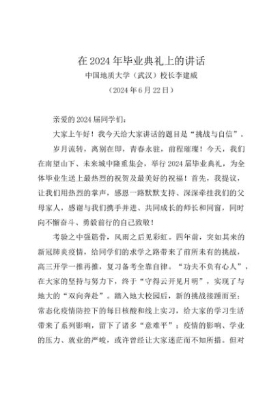 / 领导讲话:20240622在2024年毕业典礼上的讲话——中国地质大学(武汉)校长李建威