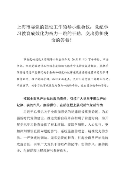 领导讲话:20240611上海市委党的建设工作领导小组会议:党纪学习教育成效化为奋力一跳的干劲,交出勇担使命的答卷!