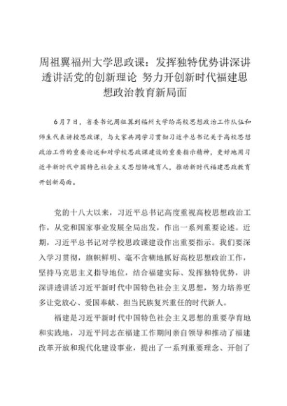 领导讲话:20240607周祖翼福州大学思政课:发挥独特优势讲深讲透讲活党的创新理论 努力开创新时代福建思想政治教育新局面