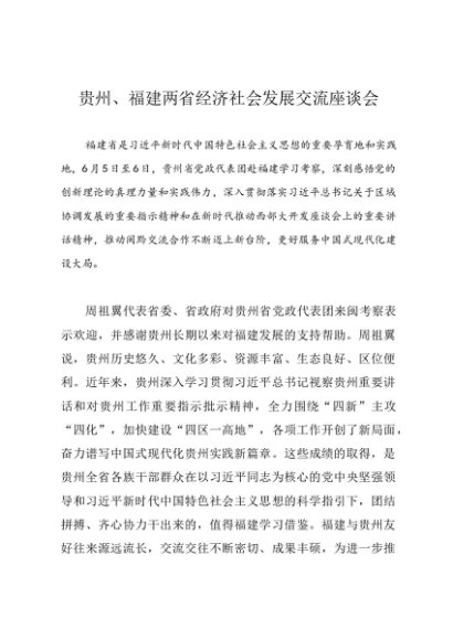 领导讲话:20240606贵州、福建两省经济社会发展交流座谈会