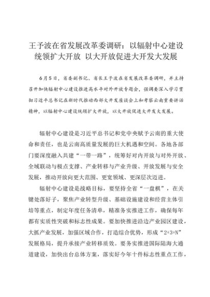 / 领导讲话:20240605王予波在省发展改革委调研:以辐射中心建设统领扩大开放 以大开放促进大开发大发展
