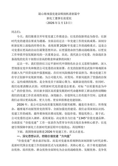 / 领导讲话:20260115新化工董事长张爱民:凝心铸魂强党建奋楫扬帆谱新篇中