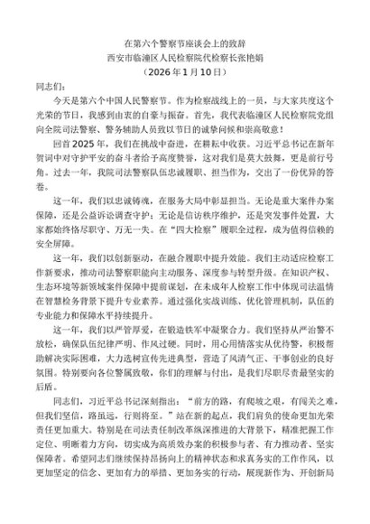 / 领导讲话:20260115西安市临潼区人民检察院代检察长张艳娟:在第六个警察节座谈会上的致辞