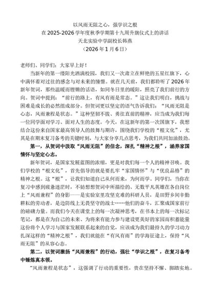 / 领导讲话:20260115在2025-2026学年度秋季学期第十九周升旗仪式上的讲话