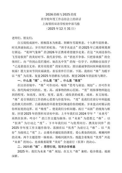 / 领导讲话:20260115在学校年度工作总结会上的讲话:2026的维与2025的度