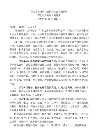 / 领导讲话:20260115河北省原副省长刘健生:在河北省诗词协会换届大会上的致词
