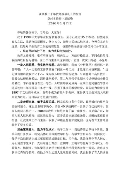 / 领导讲话:20260115登封实验高中屈延峰:在从教三十年教师致敬礼上的发言