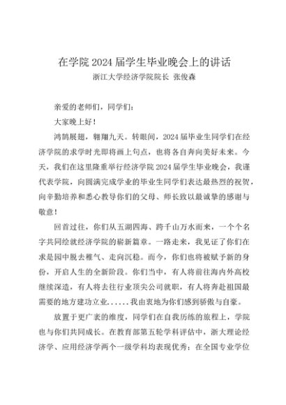 / 领导讲话:20240605在学院2024届学生毕业晚会上的讲话——浙江大学经济学院院长 张俊森