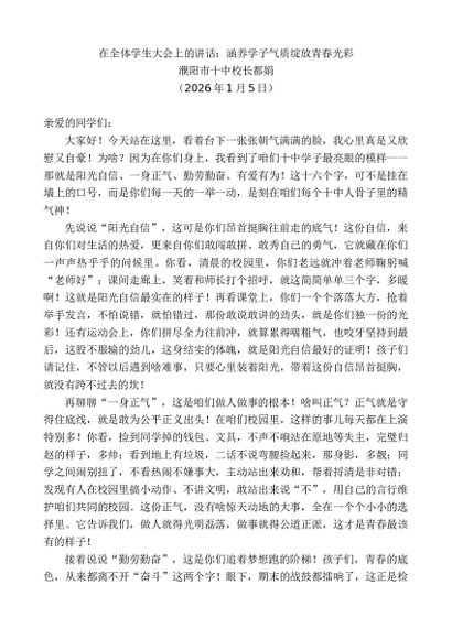 / 领导讲话:20260115濮阳市十中校长都娟:在全体学生大会上的讲话:涵养学子气质绽放青春光彩