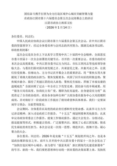 / 领导讲话:20260115江阴市政协主席邵文松:在政协江阴市第十六届委员会第五次会议闭幕会上的讲话