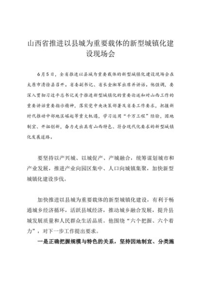 / 领导讲话:20240605山西省推进以县城为重要载体的新型城镇化建设现场会