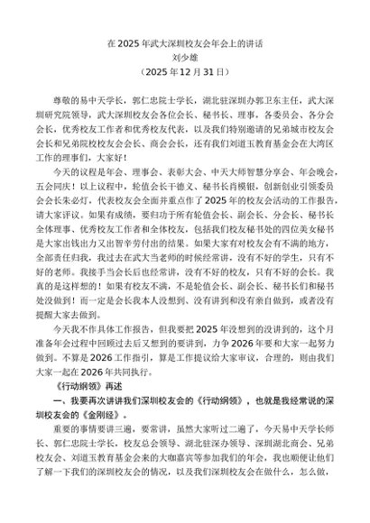 / 领导讲话:20251230刘少雄:在2025年武大深圳校友会年会上的讲话
