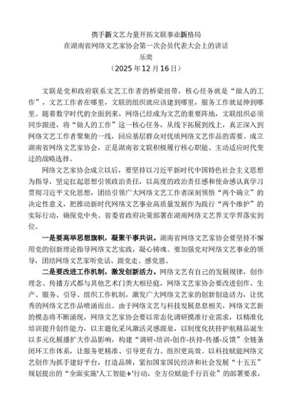 / 领导讲话:20251230在湖南省网络文艺家协会第一次会员代表大会上的讲话