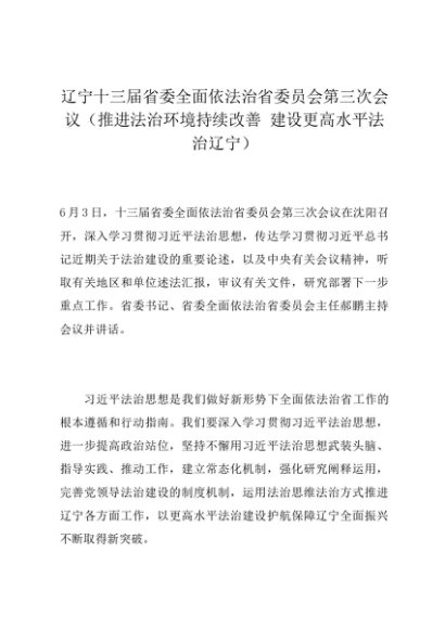 / 领导讲话:20240603辽宁十三届省委全面依法治省委员会第三次会议(推进法治环境持续改善 建设更高水平法治辽宁)