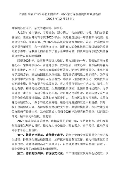 / 领导讲话:20251230在雨轩学院2025年会上的讲话