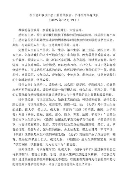 / 领导讲话:20251230在作协妇联读书会上的总结发言:书泽生命终身成长