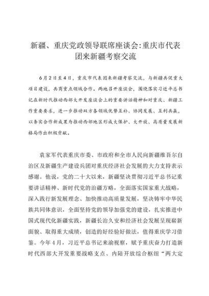 / 领导讲话:20240604重庆、新疆党政代表团座谈会:重庆市代表团来新疆考察交流
