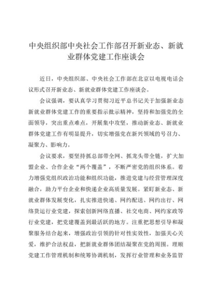 / 领导讲话:20240603中央组织部中央社会工作部召开新业态、新就业群体党建工作座谈会