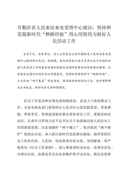 / 领导讲话:20240603许勤在省人民来访来电受理中心接访:坚持和发展新时代“枫桥经验”用心用情用力做好人民信访工作