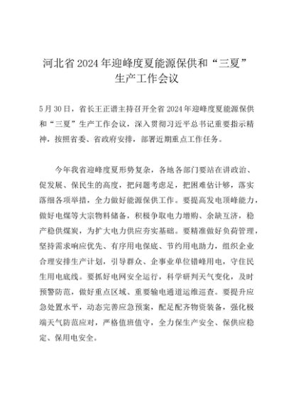 / 领导讲话:20240530河北省2024年迎峰度夏能源保供和“三夏”生产工作会议