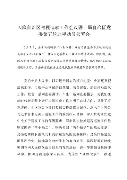/ 领导讲话:20240603西藏自治区巡视巡察工作会议暨十届自治区党委第五轮巡视动员部署会