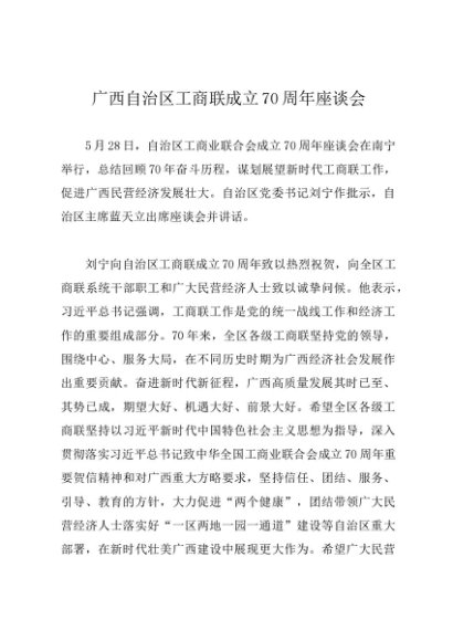 领导讲话:20240528广西自治区工商联成立70周年座谈会